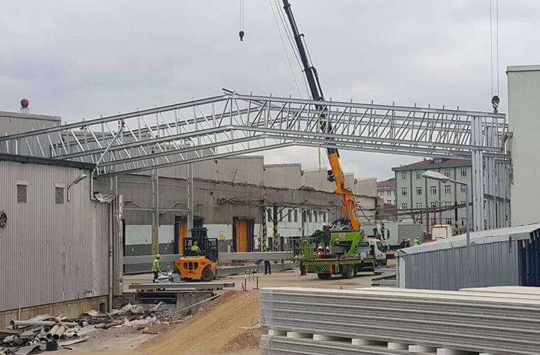 Yaklaşık 2.200 m² alanda var olan mevcut depo yapısı yerine Akıllı Çelik Yapılar kullanılarak 26 metre açıklıkta ve 7.5 metre yüksekliği olan çelik konstrüksiyon modelinin kurulumu 7 günde başarıyla tamamlandı.